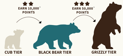 All points earned during a 12 month period will contribute to your status. You will be notified when you earn enough points to join the next tier. Members can unlock Black Bear tier by earning 10,000 points and Grizzly tier with 50,000 points.